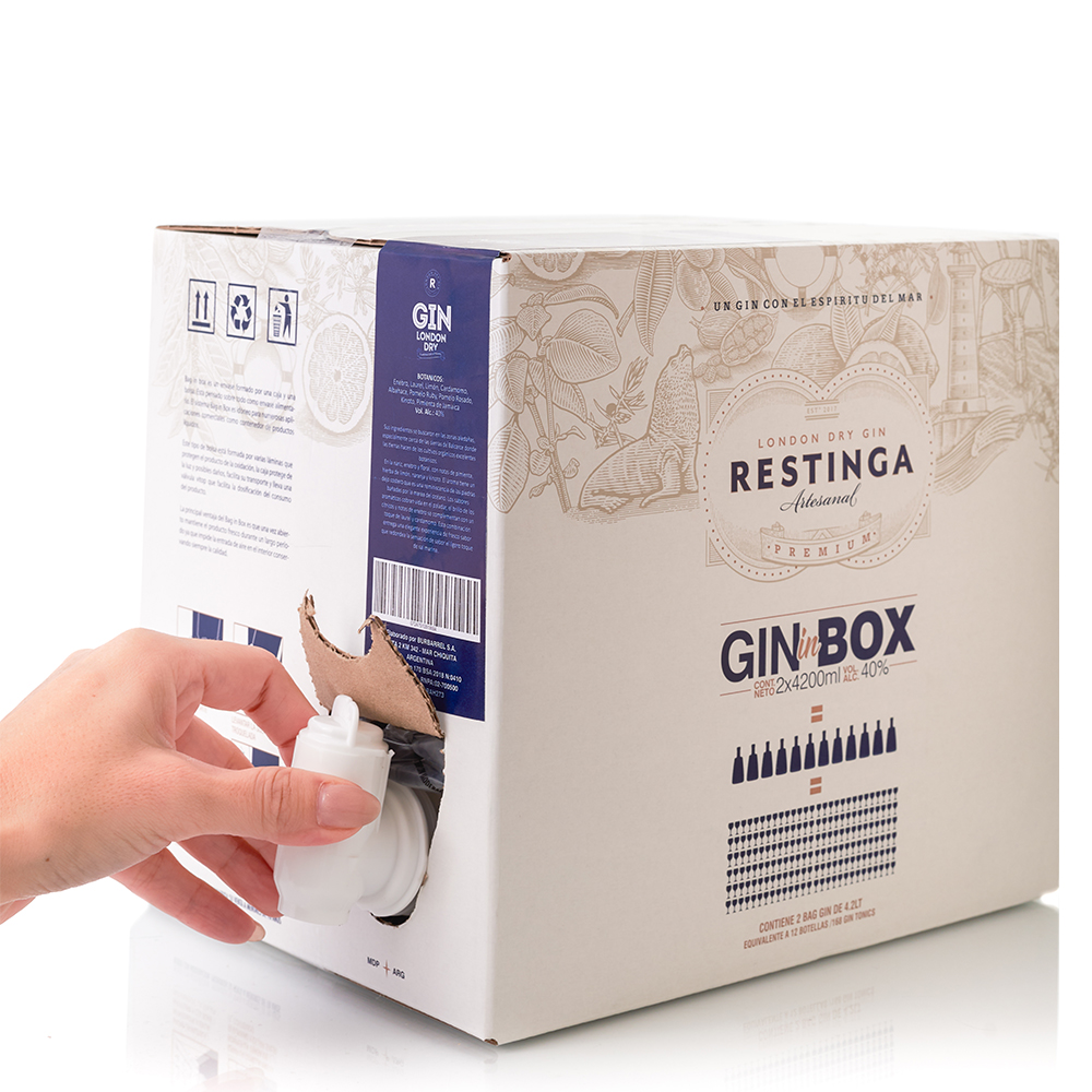 New Bag Gin Box is a packaging consisting of a box and two bags. It is primarily intended as a food packaging. The Bag in Box system is ideal for numerous commercial applications as a product container.